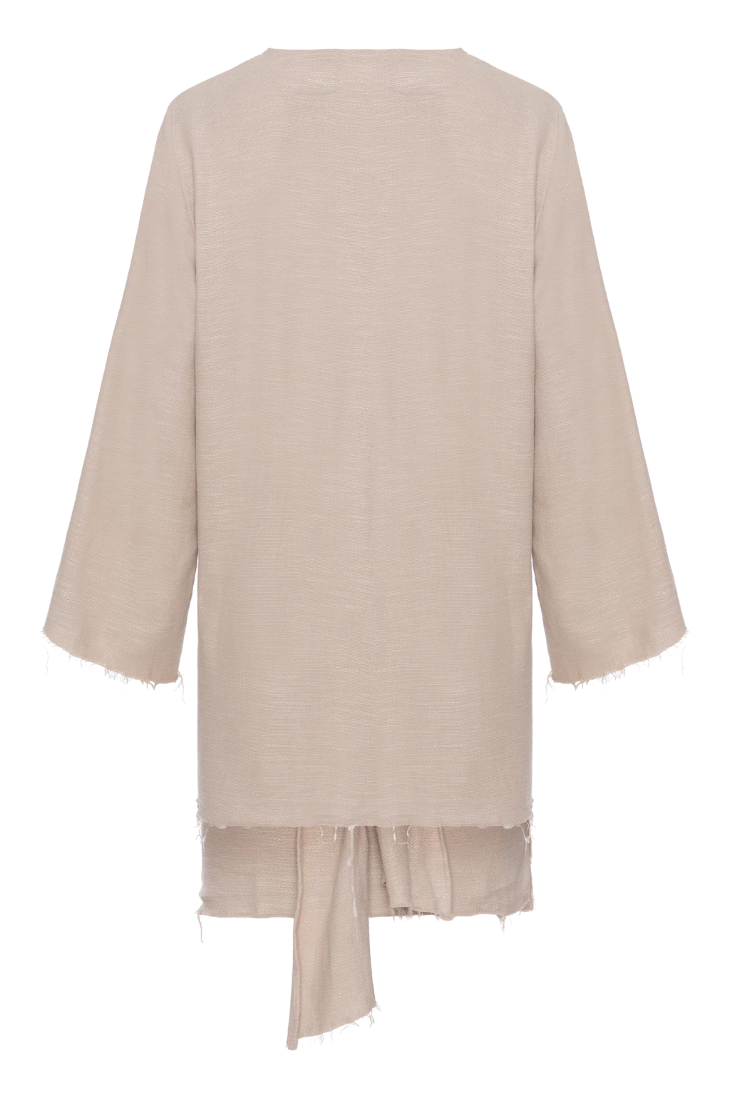 O Conjunto Gisele é a expressão máxima do luxo despretensioso, oferecendo uma estética rústica e sofisticada. Confeccionado em linhão no tom areia mais fechado, a dupla se destaca pelo charme artesanal das bordas desfiadas/franjadas presentes na barra e nos punhos, adicionando textura e modernidade.